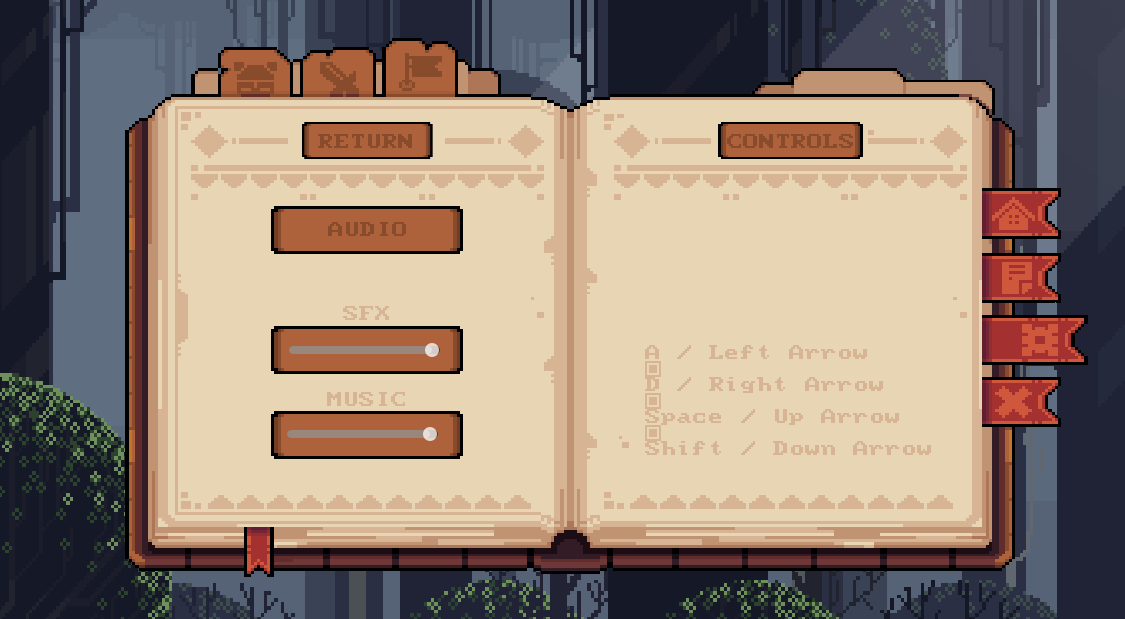 Through the Woods is a 2D pixel-art, single-player game with a dark, eerie aesthetic. You play as a hooded figure on a journey to deliver a weapon of prophecy to a legendary hero. Starting in a monster-filled forest, you must navigate your way to a deep cave to find the hero. The game features three lives, making survival a key element.